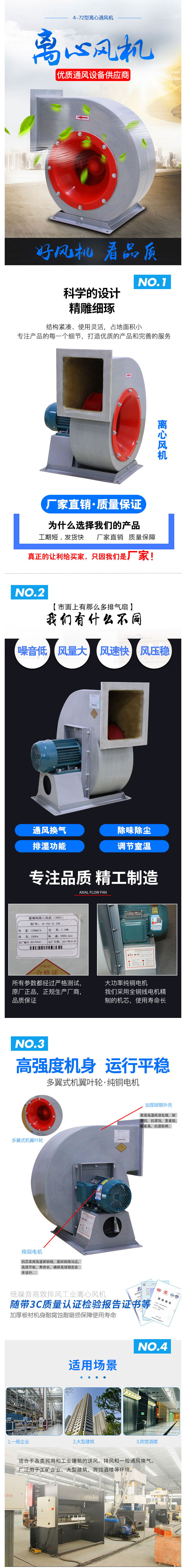 4-72型離心式(shì)通風機可輸送空氣和其他不自燃的、對人(rén)體(tǐ)無害的、對鋼材無腐蝕性的氣體。氣(qì)體內不允許有粘性物質,所含塵土及硬質顆粒物(wù)不大於150mg/立方。氣體溫度不(bú)得超過80°C。該 ...